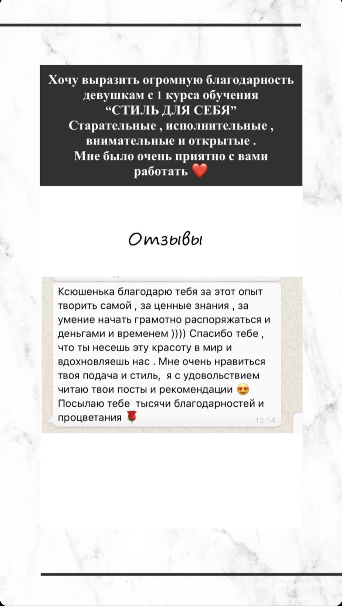 А также, при желании у тебя будет возможность задать любые вопросы по теме стиля и гардероба в процессе изучения материала и лекций лично автору курса, просто напиши мне в Директ и я с удовольствием тебя проконсультирую!